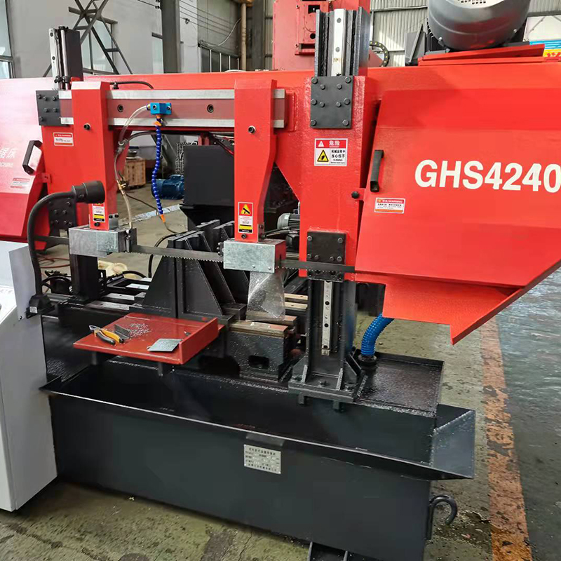 GHS4240数控锯床床身采用优质板材焊接成型,经振动时效工艺处理,主传动采用精密轴承加多楔带轮。控制面板采用人机界面,锯切参数数字设定,自动与手动切换,简便快捷。主要部件均采用进口加工中心、数控镗铣床加工生产。设备具有锯切精度高、刚性强、稳定性好、锯缝小,节约材料等优点。