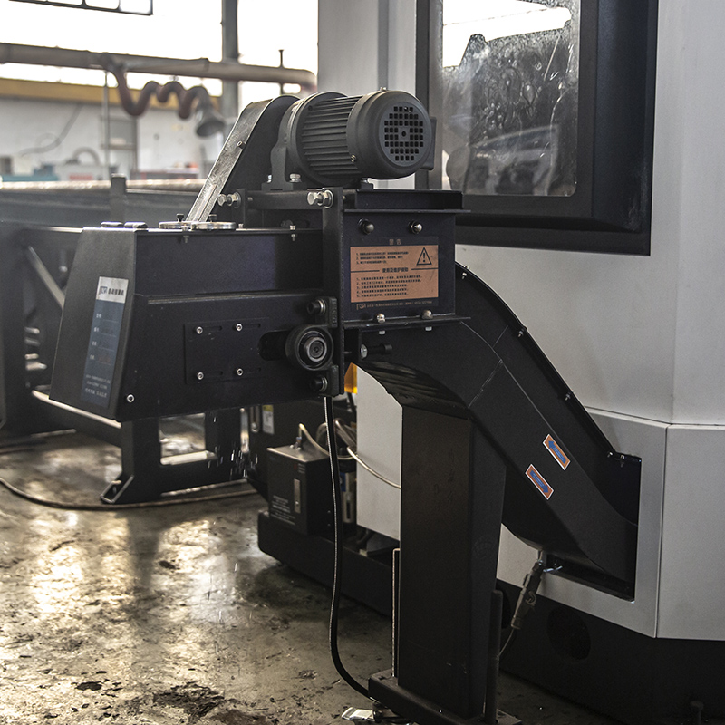 1.9高效排屑装置:加装链板式排屑机,采用PLC控制,可靠输送和排岀各种切屑,轻小切屑也不易粘,输送效率高,安全可靠。